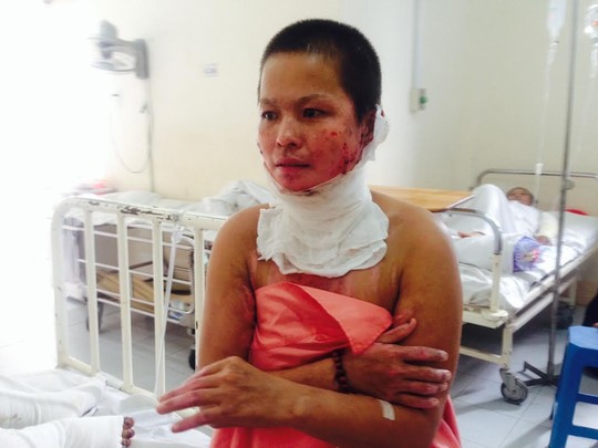Chị Nga bị phỏng nặng do chiết xăng gần lồng đèn