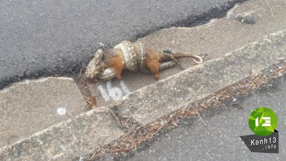 Anh Adrian Brand tình cờ bắt gặp cảnh con rắn dài 2m nuốt chửng con thú có túi trên đường phố giữa ban ngày. Video anh Adrian Brand ghi lại bằng điện thoại cảnh tượng hãi hùng này được chia sẻ lên YouTuBe đã thu hút gần 60.000 lượt người xem.