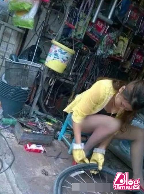 Bất ngờ xuất hiện hot girl sửa chữa xe đạp?
