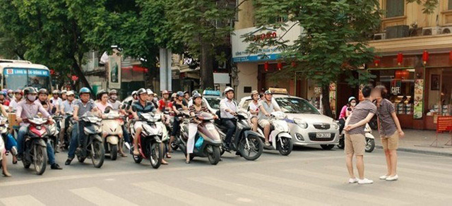 Bức ảnh này do thành viên Lưa Tráng D. đăng tải trên một diễn đàn mạng vào ngày 18/2 với lời chú thích: "Vừa dừng đèn đỏ ngã tư Hàng Bài - Hàng Khay, tí nữa thì mình đạp nhầm chân ga!".