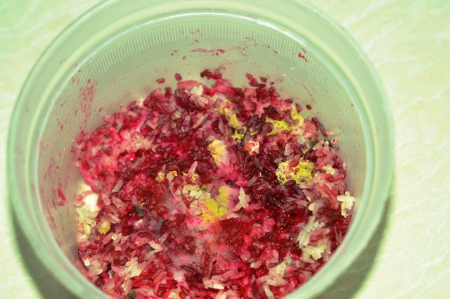 Lấy số cơm chuyển màu hòa vào nước, ông T cũng phát hoảng vì nước ra màu đỏ