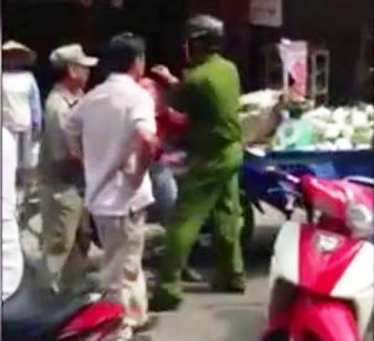 Hình ảnh thượng sĩ Hà đánh người bán hàng rong nhập viên.