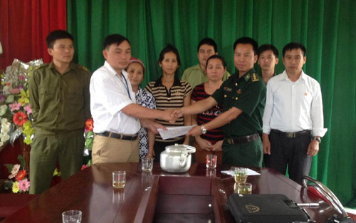 Lực lượng Đồn biên phòng Thông Thụ làm thủ tục bàn giao với gia đình các nạn nhân.
