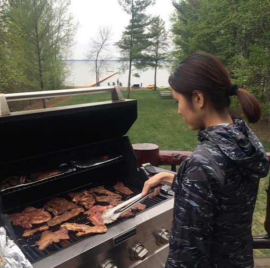 Giữa không gian thiên nhiên, Hà Tăng đã trổ tài nấu nướng để gia đìnhcó một bữa tiệc vui vẻ bên nhau.