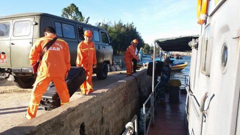 Các chuyên gia vận chuyển đưa thiết bị lên tàu ra khu vực tìm kiếm. Ảnh: Người đưa tin