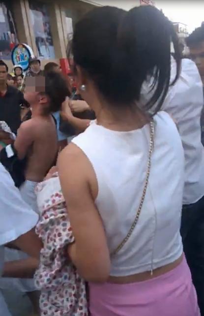 Sự việc ồn ào đã thu hút rất nhiều người đi đường hiếu kỳ dừng lại, 1 vài người đã tới can ngăn, khuyên người vợ bình tĩnh dừng việc đánh người, nhưng chị ta luôn đáp trả lại 1 câu: "Đây không phải việc của anh"...