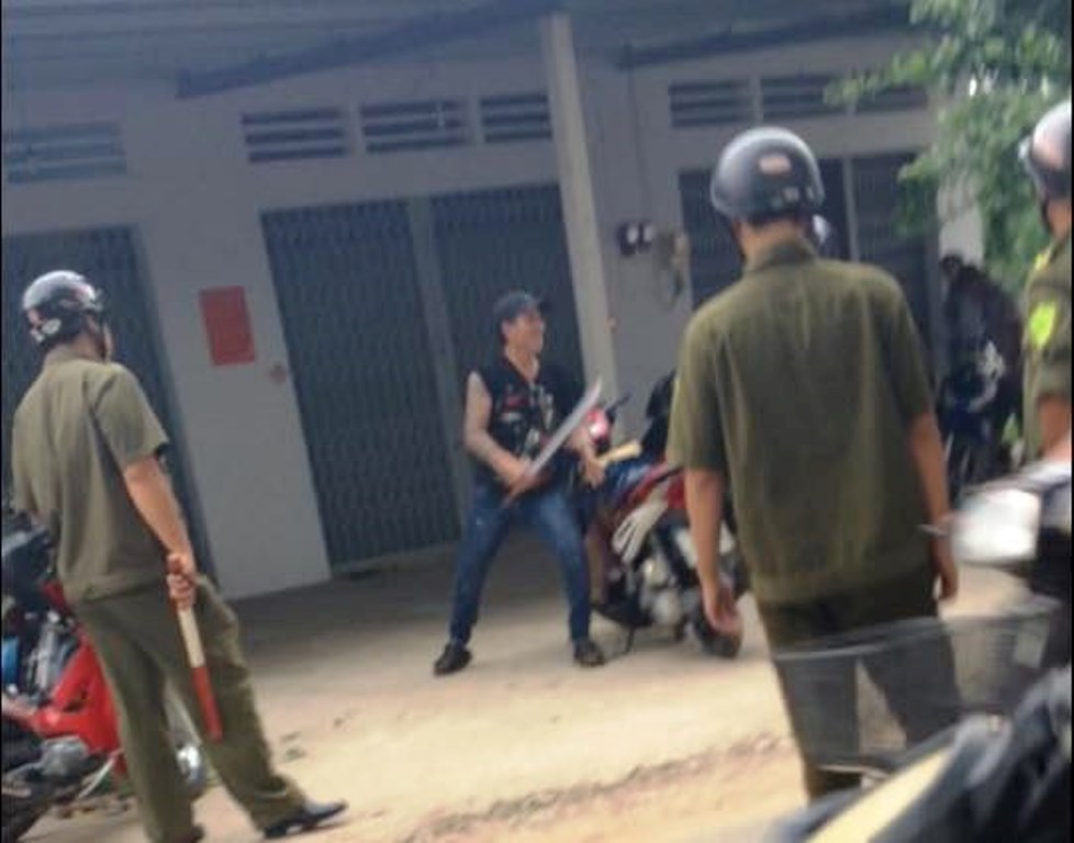 Phong cầm cây mã tấu dọa chém những ai dám đến gần