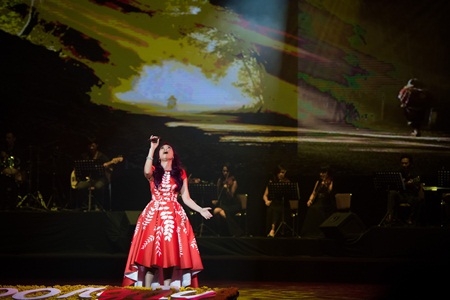 Sau đó lớn dần lên, tôi nghe các nghệ sĩ đàn chị hát nhiều nhạc của ông và yêu từ lúc nào không biết nữa. Hôm nay, chúng tôi rất hãnh diện khi được đứng ở đây, thể hiện những ca khúc như là máu thịt của cố nhạc sĩ và coi đó là trách nhiệm lớn với những khán giả yêu nhạc của ông”.
