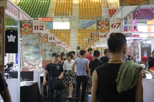 Hàng trăm thợ xăm hình từ 12 quốc gia có mặt tại sân vận động Quần Ngựa trong hai ngày 23-24/6. Giữa các quầy hàng là tiếng ồn của máy xăm cùng tiếng chuyện trò náo nhiệt của giới trẻ thủ đô.