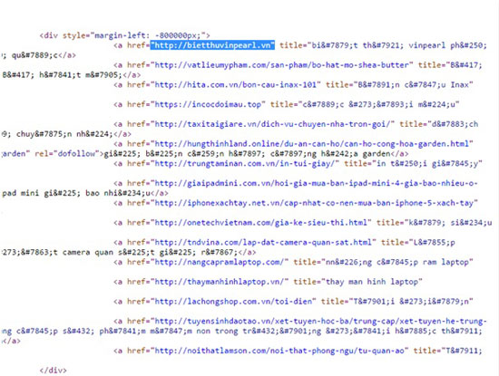Một loạt các trang website của nhà nước CSVN đang bị chèn link ẩn.Nhiều nghi vấn được đưa ra rất có thể những trang này đã bị hacker đột nhập hoặc do trang web bị lỗi,hoặc người quản lý trang đưa thông tin vào trang....