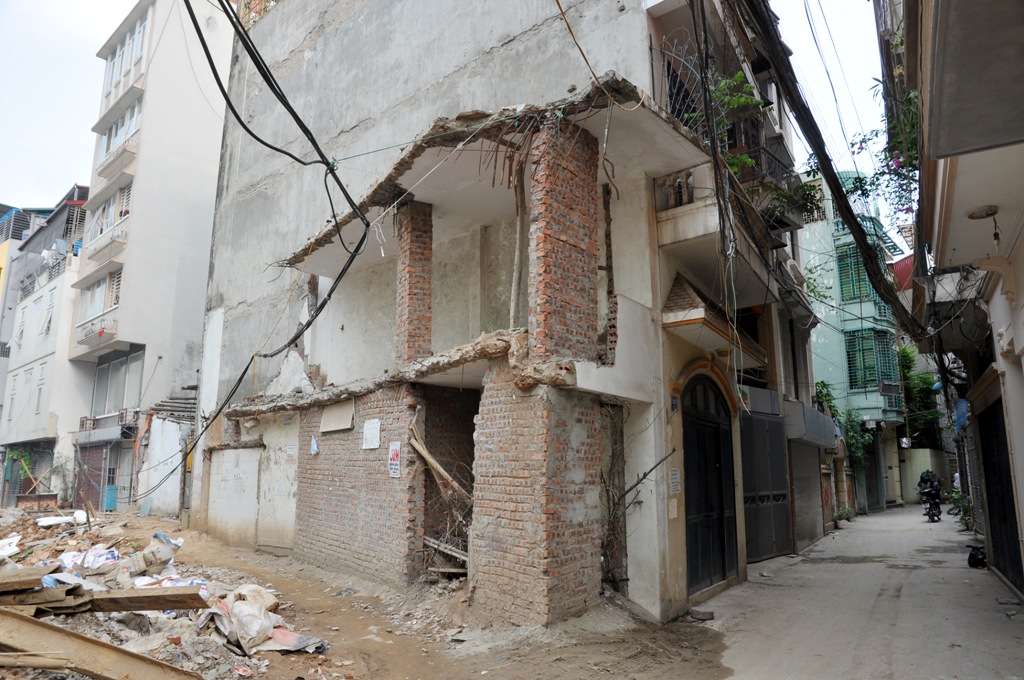Do bị lấy để làm đường nên một số nhà còn lại rất ít đất. Được ở mặt đường nên dù ít đến đâu họ vẫn cố tình xây nhà lên. Vì vậy, những ngôi nhà mỏng như tờ giấy mọc nham nhảm ở Hà Nội.