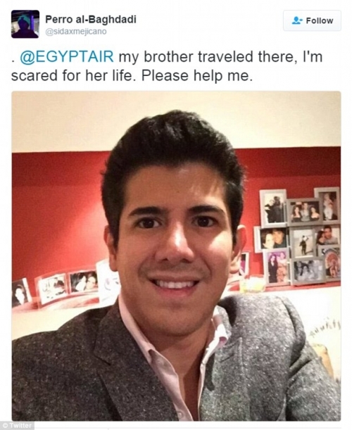 Sau khi chiếc máy bay mang số hiệu MS804 của hãng hàng không EgyptAir (Ai Cập) biến mất trên biển Địa Trung Hải ngày 19/5, ảnh của Alfonso xuất hiện trên Twitter, kèm theo dòng trạng thái cầu cứu: “Anh trai tôi có mặt trên chuyến bay, tôi lo lắng về tình trạng của anh ấy. Làm ơn giúp tôi”.