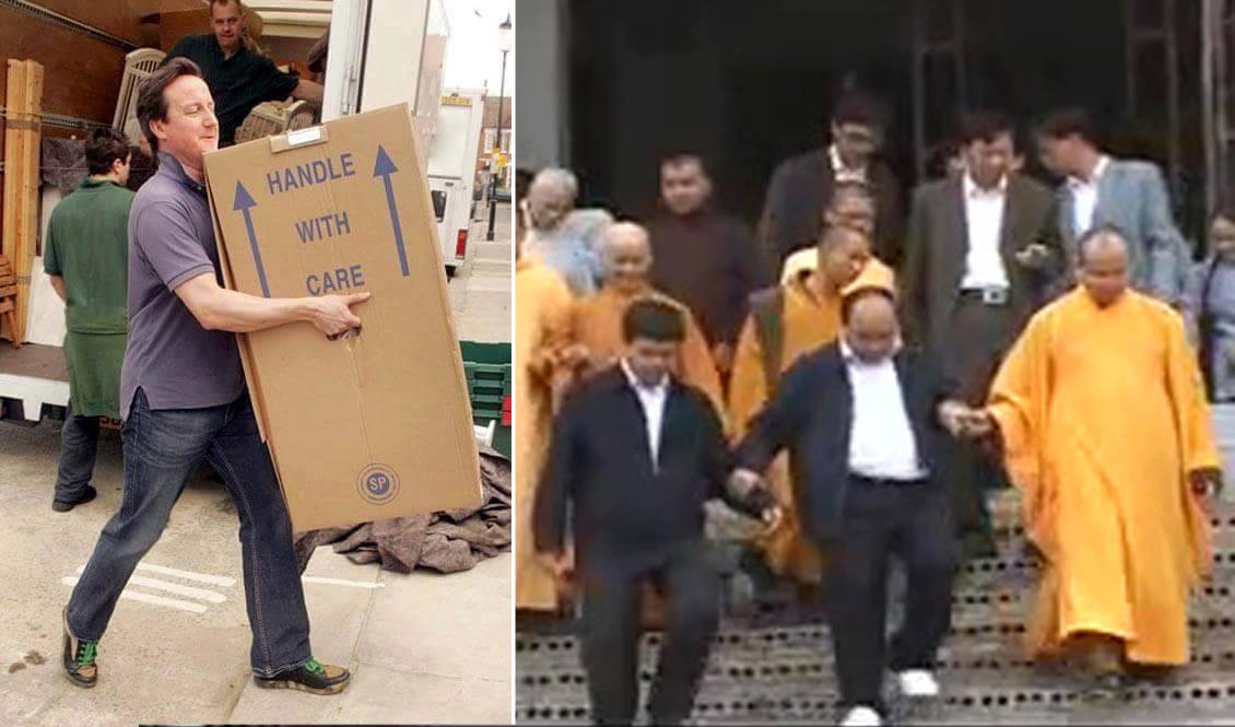 Ảnh trái: Sau khi từ chức, cựu thủ tướng Anh David Cameron tự tay xếp đồ rời khỏi căn nhà số 10 Downing Street. Một phong cách bình dị chỉ có ở những lãnh đạo dân cử