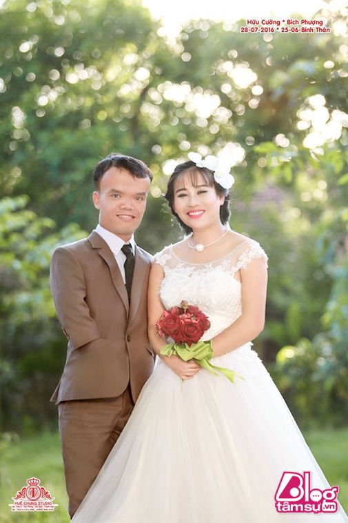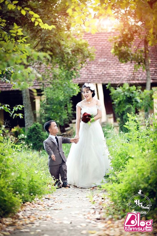 Chỉ nhìn qua, ai cũng sẽ nhận ra ngoại hình vô cùng đặc biệt của chú rể. Có lẽ, để có được cái kết viên mãn này cả hai đã phải trải qua một khoảng thời gian khó khăn do định kiến của xã hội cũng như phản đối của người thân, gia đình. Thế nhưng, bất cứ ai khi xem bộ ảnh cũng sẽ thấy được tình yêu cháy bỏng đang ánh lên trong đôi mắt của cô dâu – chú rể.