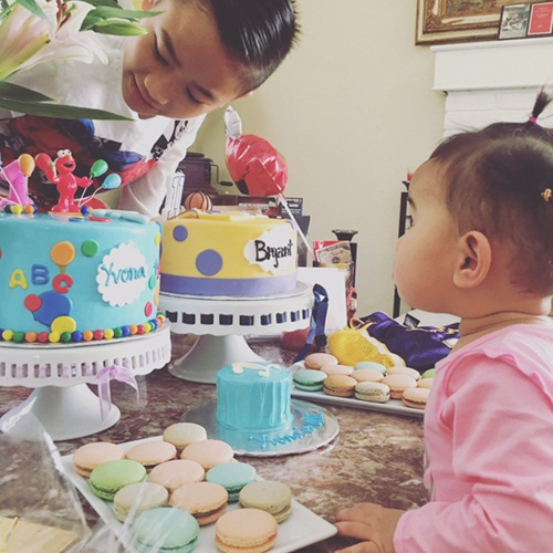 Kim Hiền và ông xã Andy đã tổ chức tiệc sinh nhật hoành tráng nhưng không kém phần ấm cúng cho 2 con Sonic và Yvona.