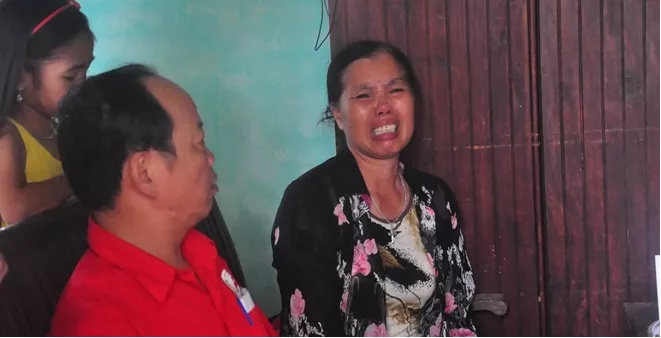 Bà Lương Thị Sinh, chị gái bà Lương Thị Năm (một nạn nhân bị lan can nhà ông Đúng đè trọng thương) khóc lớn kể lại lúc nhận tin em gái gặp nạn.