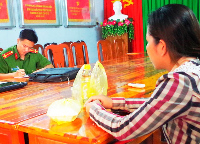 Cảnh sát đang thẩm vấn Diễm Thúy. Ảnh: Nhật Tân.
