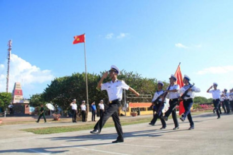 Lễ chào cờ trên đảo Trường Sa. Ảnh: báo Tiền phong.