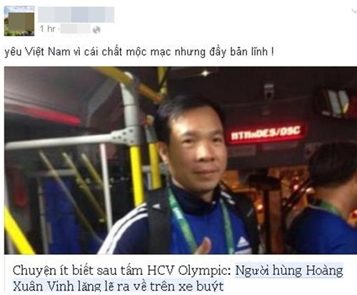 Một dân mạng có nickname H.L lại cho rằng: “Thấy tự hào người con đất Việt. Xin chúc mừng anh, Hoàng Xuân Vinh, một xạ thủ tài năng, khiêm tốn, giản dị”.