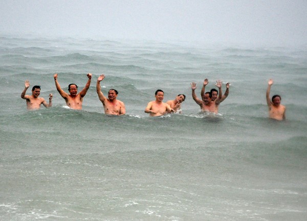 Bài báo đăng tin bọn này tắm biển lúc mưa đỗ xuống.......vậy là tắm mưa cho sạch .bọn đãng diên này khôn đáo để.......