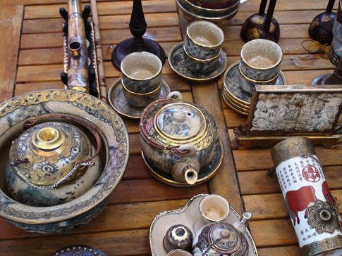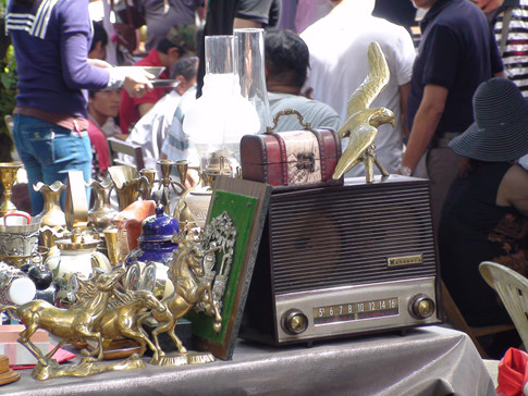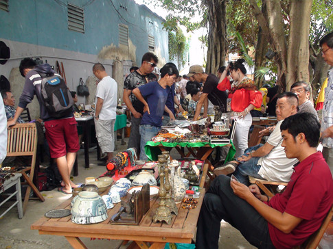 Chợ bán đủ thứ thượng vàng hạ cám: đồng hồ, mắt kính cổ, giỏ xách, quẹt zippo, chén bát bằng gốm sứ, tượng, chân nến bằng đồng, thậm chí là… hũ tiêu, đèn dầu cũ, bàn ủi than con gà.