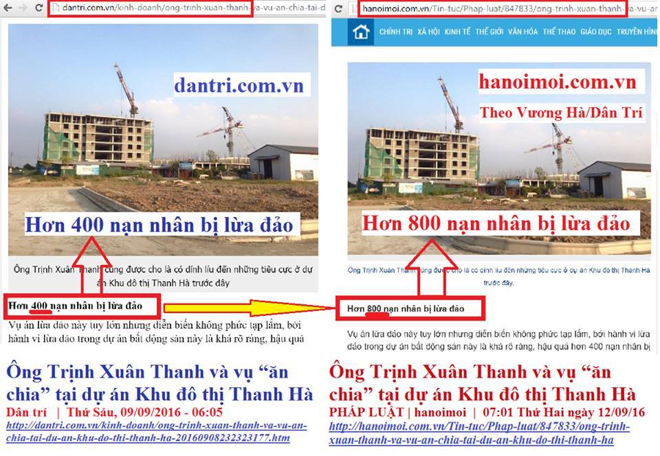 Tổng Bí Thư Trọng Lú vì muốn ĐỔ TỘI cho Trịnh Xuân Thanh nặng hơn, ra lệnh tờ "Hà Nội Mới" TĂNG GẤP ĐÔI con số "nạn nhân" từ 400 của tờ DÂN TRÍ lên thành 800 nhanh như chớp! ...
