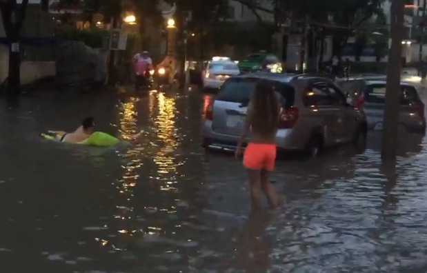 Vậy là người ta lại có thêm hình ảnh, clip trong bộ sưu tập những tình huống "dở khóc dở cười" khi các con phố ngập lụt vì mưa lớn.