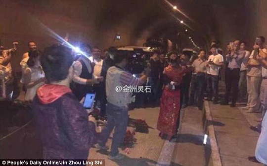 Theo quan niệm của người Phương Đông, giờ đẹp để cử hành hôn lễ là vô cùng quan trọng. Vì vậy mà một cặp đôi tại tỉnh Thiểm Tây – Trung Quốc đã phải tổ chức hôn lễ ngay trong đường hầm chỉ vì sợ lỡ giờ lành. Được biết đã xảy ra một vụ tai nạn khiến giao thông ùn tắc bị ùn tắc và cặp đôi không thể về kịp nơi cử hành.