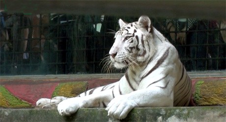 Một con cọp trắng quý hiếm được nuôi nhốt tại Bình Dương