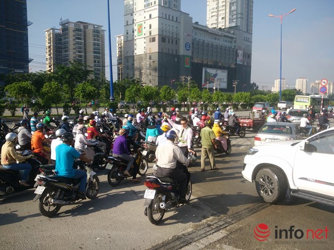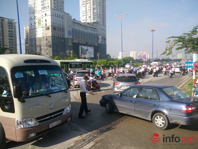 Trên tuyến đường tại quận 2,Sài Gòn có dấu hiệu ùn tắc giao thông.Giữa thời tiết nắng gắt,anh Tây thực hiện việc hướng dẫn và chặn các xe để tránh ùn tắc trên tuyến đường.Tuy nhiên nhiều xe vẫn cố tình vượt trên đường khiến anh Tây cảm thấy bất lực.