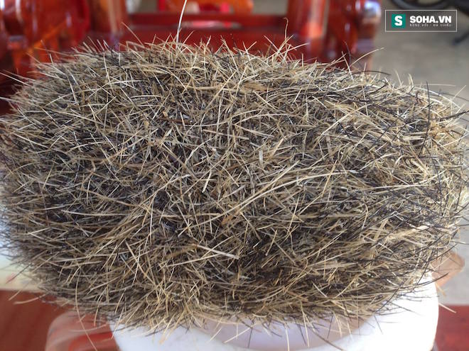 Qua quan sát, vật được cho là viên cát lợn này có hình bầu dục, nặng 0,5kg, bên ngoài có lông trông giống như các lông lợn được liên kết lại với nhau, màu nâu lẫn đen, trắng, vàng.