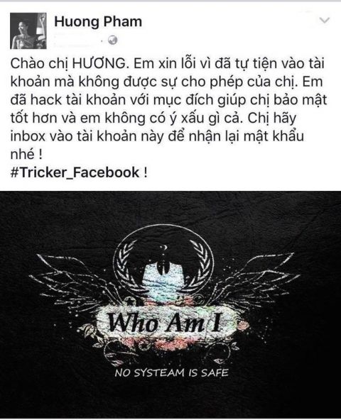 Hoa hậu Phạm Hương bị hack Facebook, hacker để lại thông điệp