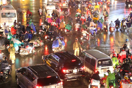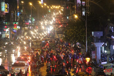 Mưa đúng vào giờ tan tầm nơi việc ùn tắc càng nghiêm trọng. Người dân phải khổ sở, chật vật mất nhiều thời gian về tới nhà