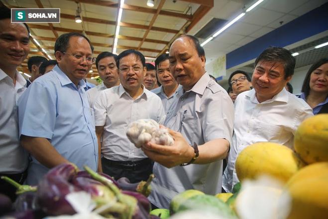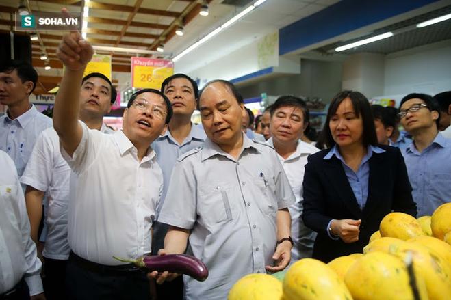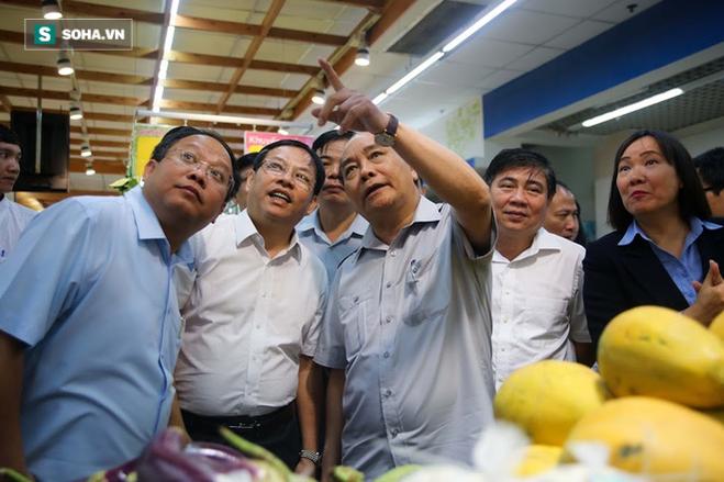 Mỗi gian hàng cá, thịt, trứng, rau củ…, Thủ tướng Nguyễn Xuân Phúc đều coi kĩ về nguồn gốc, hỏi giá cả và tình hình mua bán. Thủ tướng cũng lắng nghe ý kiến của người mua hàng về chất lượng thực phẩm trong siêu thị.