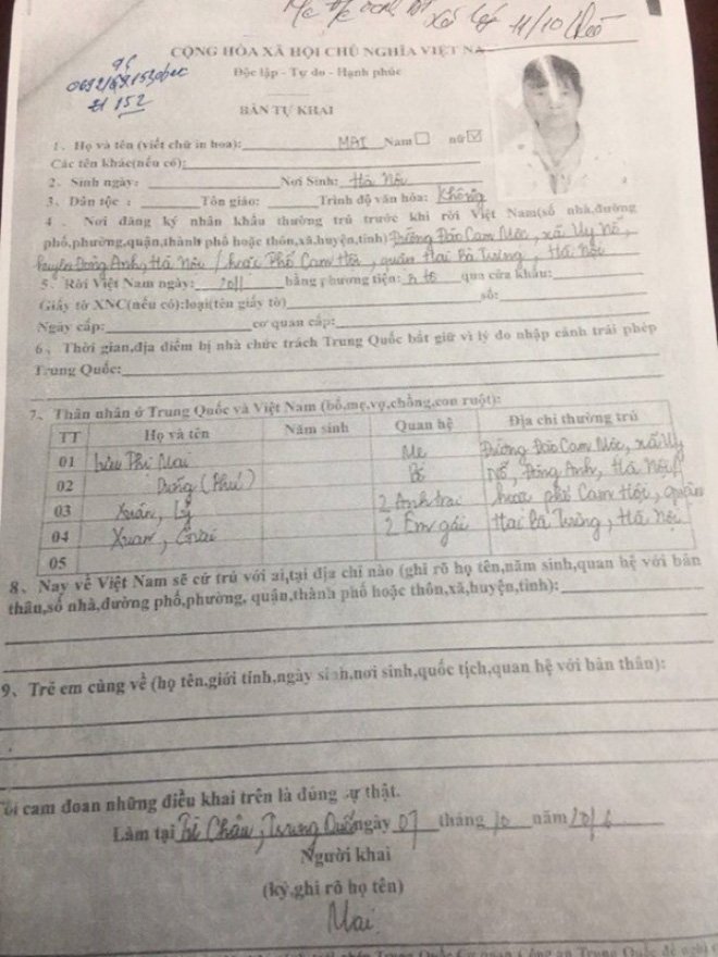 Bản khai của bé Mai trước đó tại cơ quan chức năng.