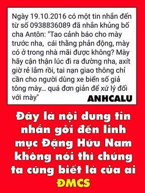 Đây là số điện thoại : 0938836089 Với tin nhắn hăm doạ Linh Mục Đặng Hữu Nam vào ngày 19/10/16