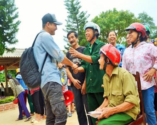 MC Phan Anh trong lần trao quà cứu trợ đồng bào miền Trung. Ảnh: Internet.