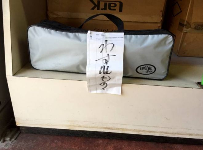 Chiếc túi được để ngay ngắn ở chỗ dễ nhìn thấy ở quầy thanh toán với dòng chữ “ai đó đã để quên chiếc túi này”.