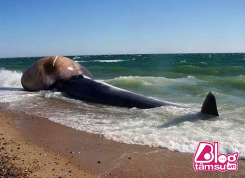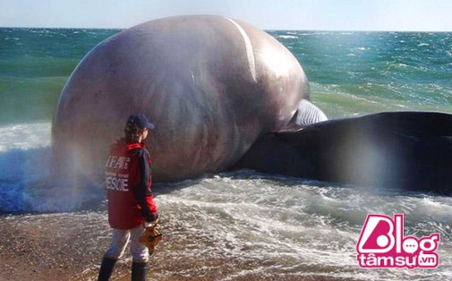 Thì ra đây là xác một con cá voi khổng lồ dạt vào bờ biển