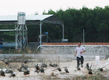 Anh Lâm Ngọc Nhâm với đàn vịt trời tại trang trại.
