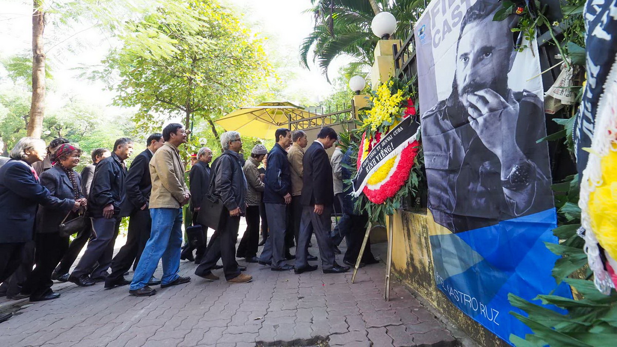 Vào sáng ngày 28/11,ngoài lãnh đạo cao cấp của Đảng CSVN đến Đại sứ quán Cuba số 65A Lý Thường Kiệt, Hà Nội đến viếng ông Fidel và ghi sổ tang.Còn có đông đảo người dân ở Hà Nội đến xếp hàng dài chờ tới lượt viếng nhà lãnh tụ Cuba.