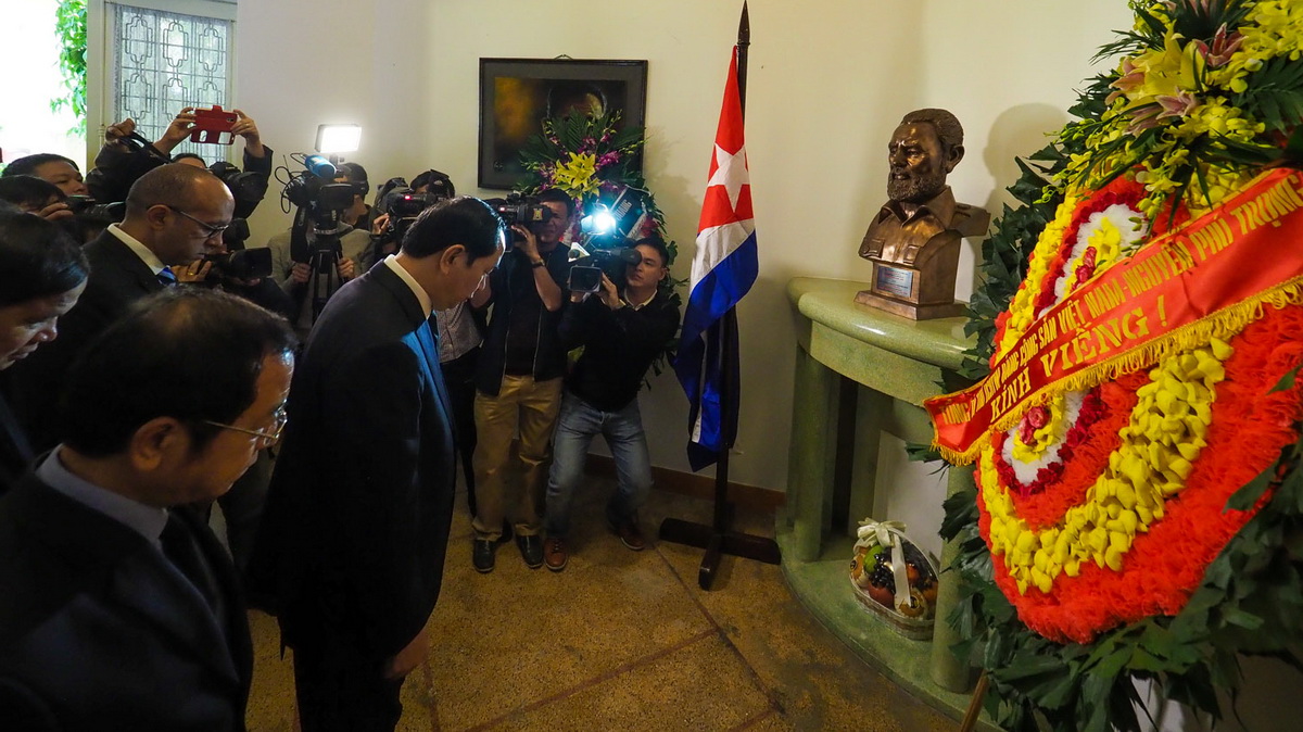 Tổng bí thư Nguyễn Phú Trọng là lãnh đạo Việt Nam đầu tiên đến viếng ông Fidel và ghi sổ tang, tiếp theo là Chủ tịch nước Trần Đại Quang và Thủ tướng Nguyễn Xuân Phúc.