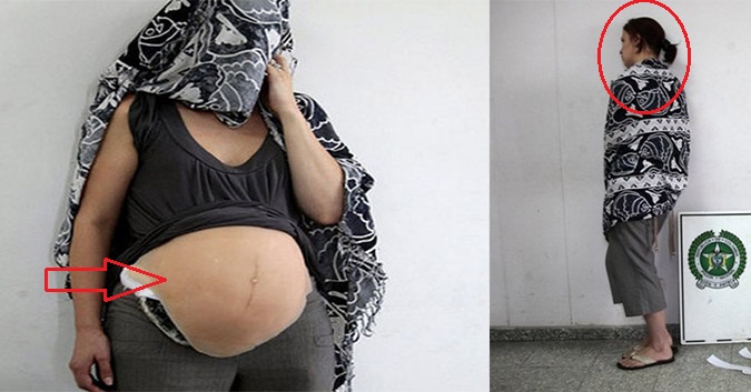 Thai phụ được nhắc đến là một du khách Canada. Cô ta khẳng định mình đang mang thai 7 tháng. Sau khi bị cảnh sát chặn lại, cô trở nên tức giận và viện cớ mình có bầu để chống đối. Thấy vậy, cảnh sát càng nghi ngờ hơn. Họ đưa cô vào một căn phòng để kiểm tra, ‘thai phụ’ bắt đầu trở nên lúng túng. Sau khi cởi áo của cô ra, cảnh sát liền nhận thấy bụng bầu thật kỳ lạ.