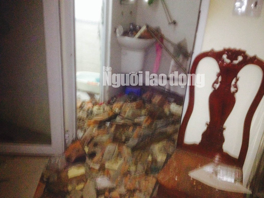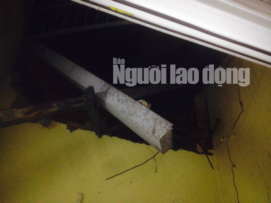 Tại dãy phòng trọ số 25/15 đường Trần Hưng Đạo bị sập hết toàn bộ trần nhựa do rung chuyển của vụ nổ này.