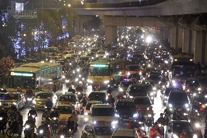 Tối đêm Noel tại các đường phố Hà Nội trở nên tắc nghẽn nghiêm trọng.Đặc biệt là bờ hồ Hoàn Kiếm đông đến nghẹt thở.Thời tiết đẹp thuận lợi khiến người dân ra đường đi chơi Noel rất đông,trong khi một số người ở nhà lại cảm thấy may mắn.