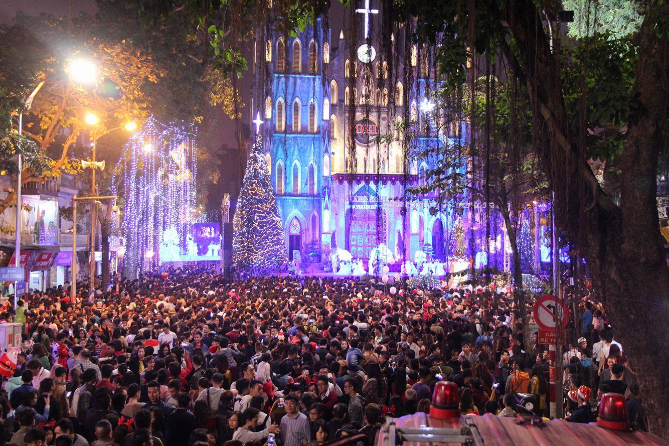 Khu vực Nhà thờ lớn ken đặc người chờ giây phút Chúa giáng sinh.
