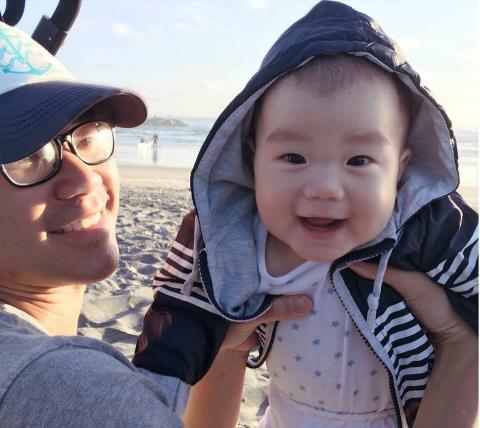 Cả nhà mình ở viện 3 ngày rồi về, đến ngay thứ 7 đã cho con đi chơi, 2 tháng tuổi, bé đã đi công tác theo bố. Từ dó đến giờ, con cũng bay 11 chuyến rồi, bố bé chăm con khéo lắm”.