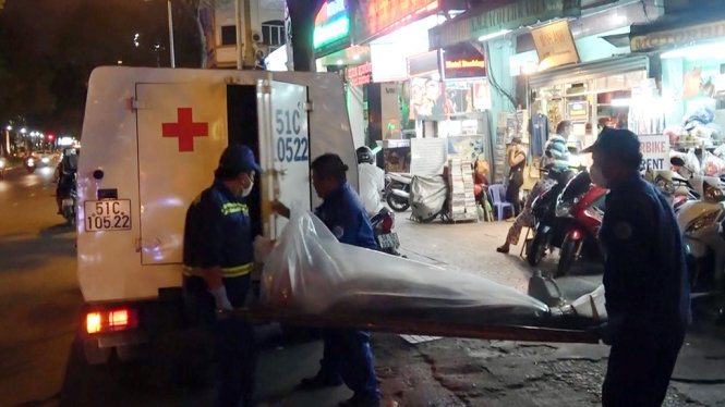 Thi thể nạn nhân được đưa lên xe chuyên dụng chuyển về nhà xác – Ảnh: Tuổi trẻ
