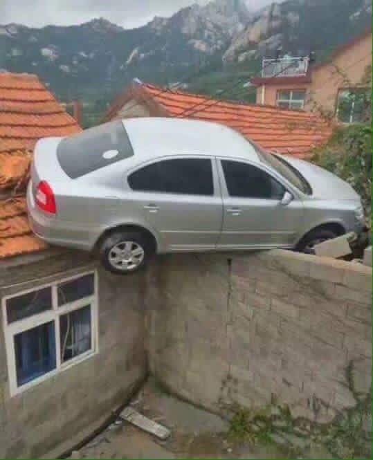 Trước đây trên mạng xã hội Việt cũng từng xuất hiện rất nhiều bức ảnh, clip ghi lại cảnh tượng lạ lùng khiến dân mạng phải “điên đầu” tìm lời giải, như bức ảnh xe ô tô mắc kẹt trên nóc nhà dưới đây là một ví dụ.