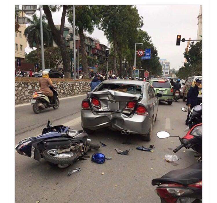 Thời điểm trên, xe ô tô Honda Civic mang biển kiểm soát 30T-866.. lưu thông hướng Giảng Võ về Láng Hạ. Khi tới ngã 3 Giảng Võ- Trần Huy Liệu, ô tô dừng chờ đèn đỏ thì bất ngờ bị nam thanh niên điều khiển xe Air Blade chạy tốc độ cao ở phía sau đâm mạnh vào đuôi chiếc Honda Civic.